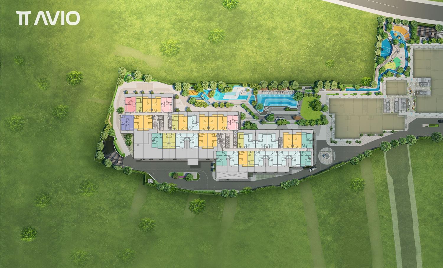 Dự án TT Avio được quy hoạch một cách khoa học với tổng cộng 2.000 căn hộ, bao gồm nhiều loại hình căn hộ như căn hộ 2 phòng ngủ 50 m², căn hộ 2 phòng ngủ + 1 phòng 60 m², cùng với các căn hộ shophouse và penthouse. Phục vụ đa dạng nhu cầu của các phân khúc khách hàng từ người độc thân đến gia đình lớn.