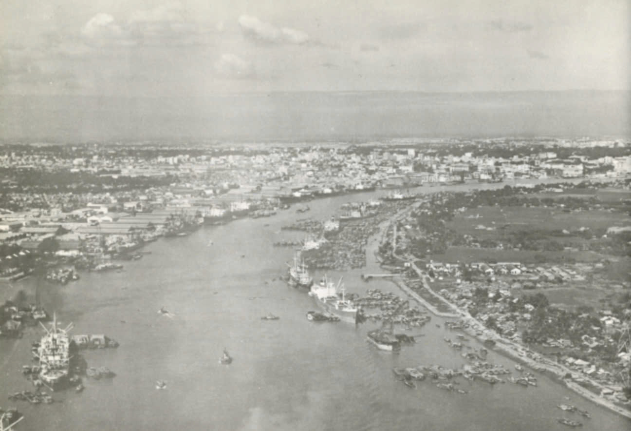 Công trường Mê Linh đầu thập niên 70 thế kỷ XX, qua góc nhìn toàn cảnh từ trên cao của Corbis bên bờ sông Sài Gòn, nay đã thay đổi rõ rệt sau 50 năm. (Ảnh tư liệu)